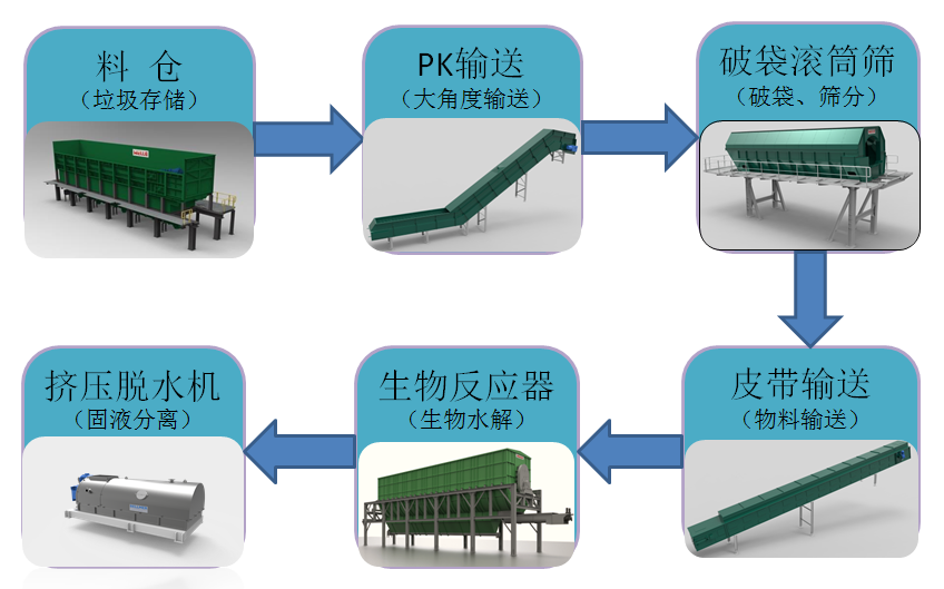 金源机械为本项目提供了成套预处理设备,例如料仓、滚筒筛、封闭式皮带输送机等,此外核心设备生物水解反应器也由金源供货,该设备是金源对德国技术的完全国产化,并结合东南亚垃圾特性进行了优化改进,大幅降低了设备成本并提升了设备适应性和可靠性。