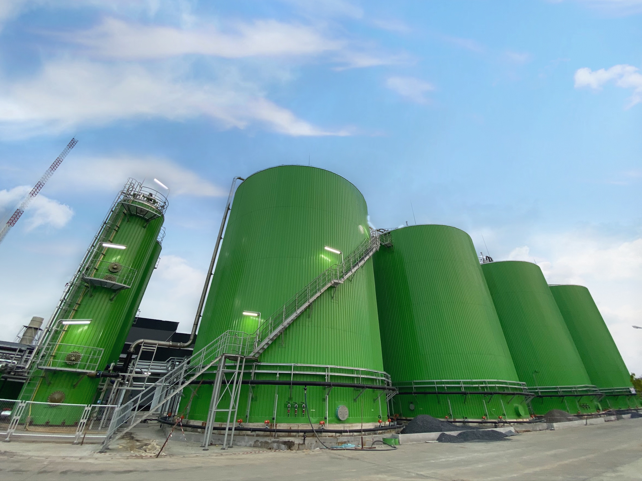 泰国项目设计有4套4000m³的高效厌氧反应器,2套1000m³/h生物脱硫系统。均由维尔利控股子公司杭州能源环境工程有限公司设计供货及指导安装。高效厌氧反应器具有高负荷、低停留时间、高效率、产气率高的特点,且沼渣量比传统的CSTR反应器更少。生物脱硫技术具有低运行成本优势。两项技术的组合实现了低成本高效率的有机物资源化利用。