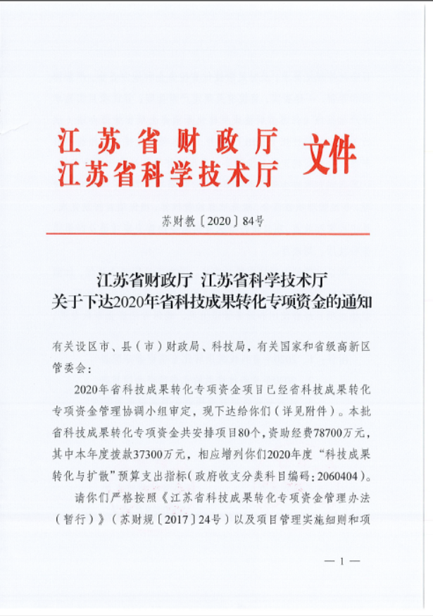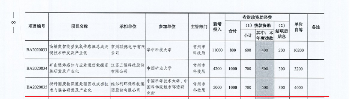 2020年江苏省科技成果转化专项资金项目立项80项,其中常州6家企业获此殊荣,维尔利集团为其中之一。